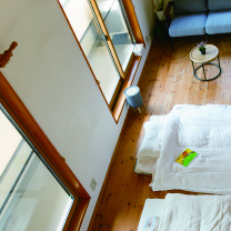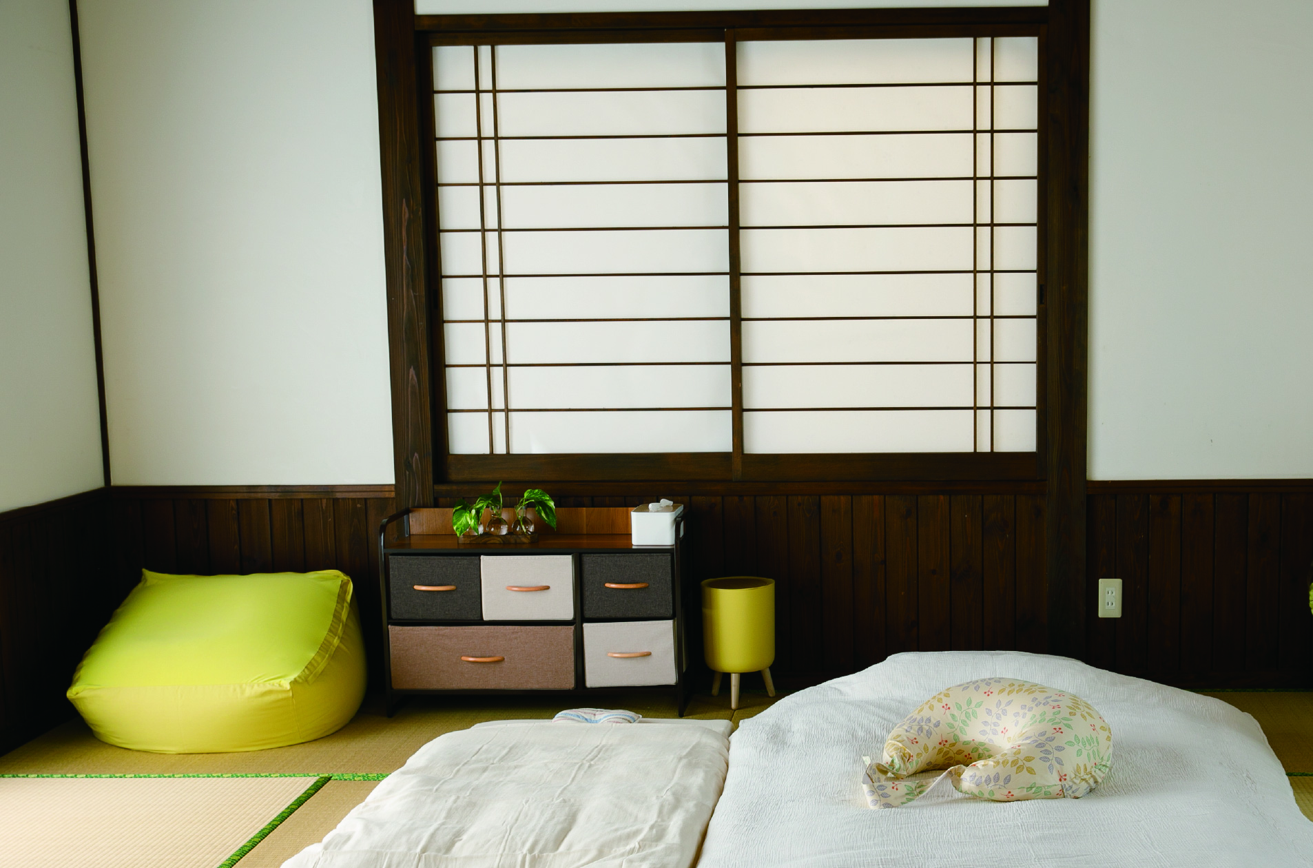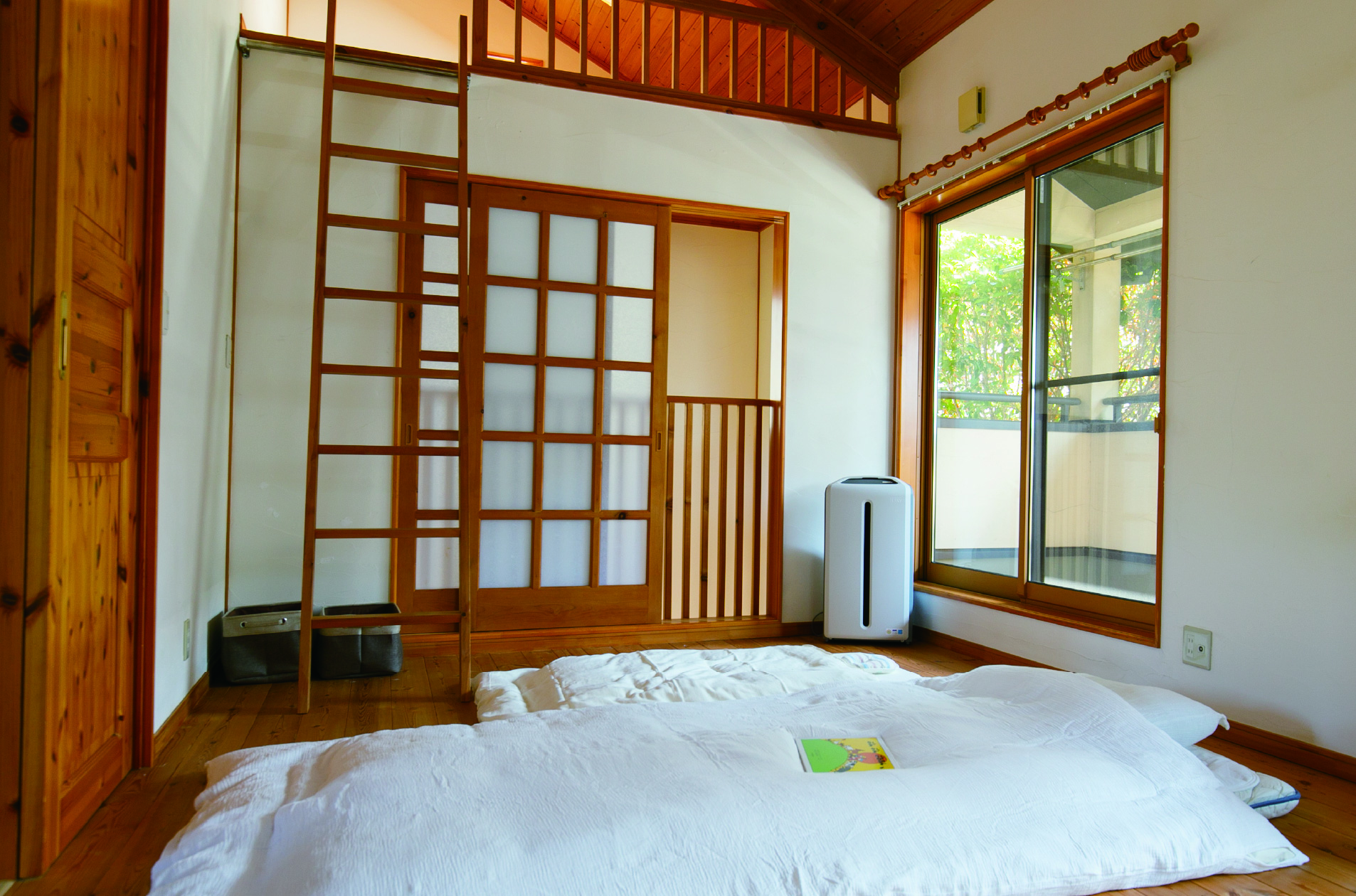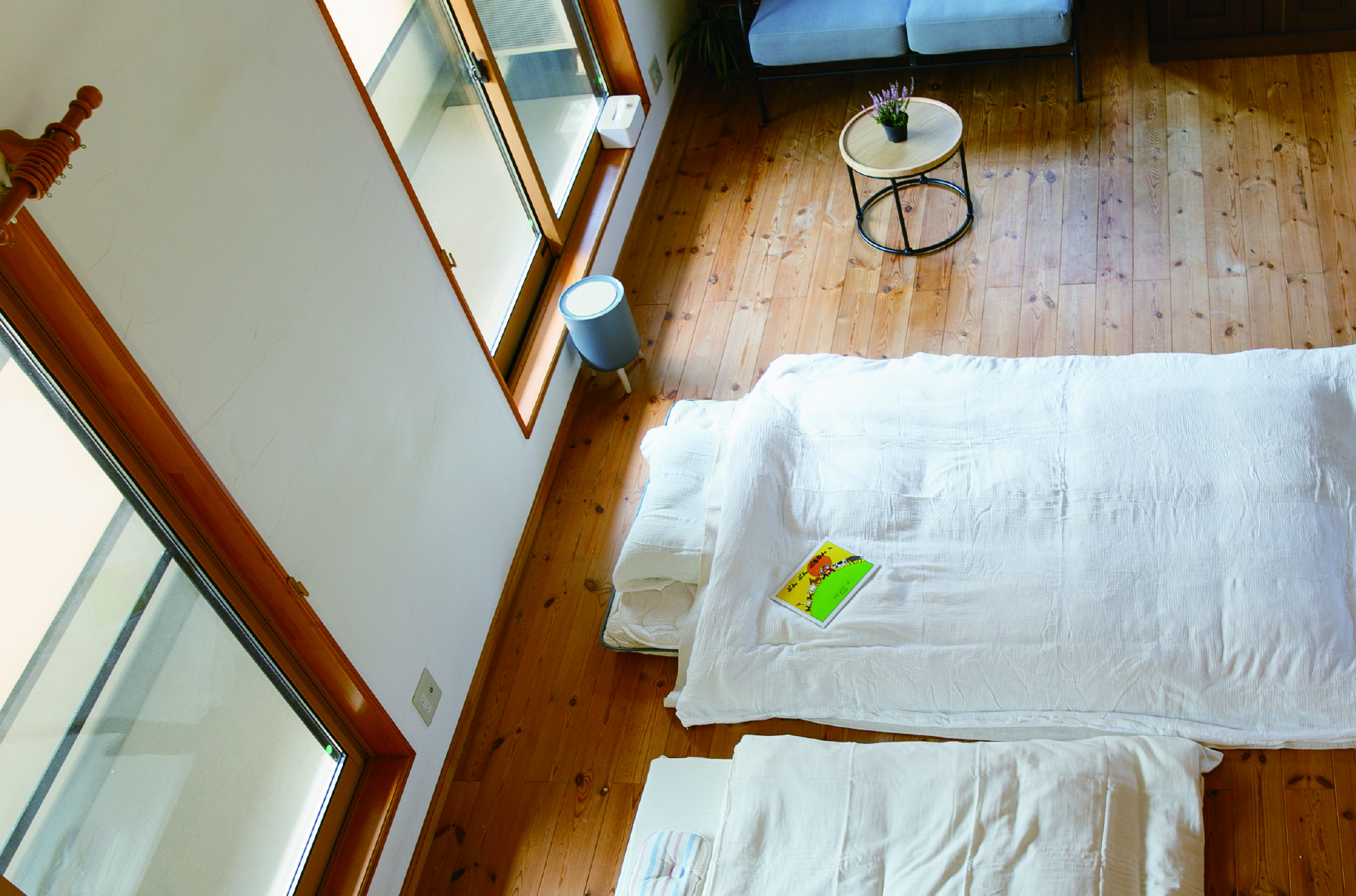 1階和室と2階洋室はお布団のお部屋、2階洋室はベッドのお部屋をご準備しています。全室、空気清浄機SKYを設置し、心地いい空間を提供しています。